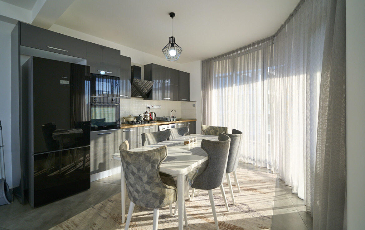 Эти современные апартаменты 3+1 предлагают захватывающий вид на море и современный дизайн с высококачественной отделкой.