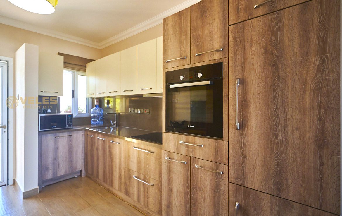 Квартира полностью отремонтирована и выполнена в современном стиле: новая кухня с каменной столешницей и встроенной техникой, обновлённые покрытия, гардеробная вместо второго санузла. Частично меблирована, без кроватей в спальнях.