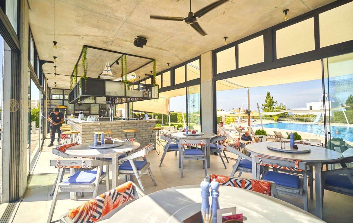 Комплекс предлагает развитую инфраструктуру: бассейны для взрослых и детей, спортзал, ресторан, зоны отдыха, детскую площадку и ухоженные сады. Также есть смотровая площадка с выходом к морю — идеальное место для прогулок.