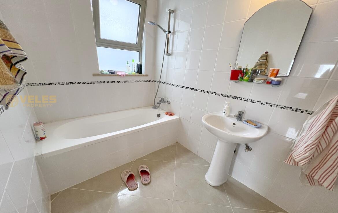 Комплекс предлагает множество удобств для жителей: общие бассейны, дорожку для плавания, тренажерный зал и сауну только для резидентов, детскую площадку, теннисные, баскетбольные и футбольные корты. С охраняемым въездом, безопасной территорией и тщательно ухоженной инфраструктурой, комплекс обеспечивает комфортное и спокойное проживание всего в нескольких шагах от пляжа.