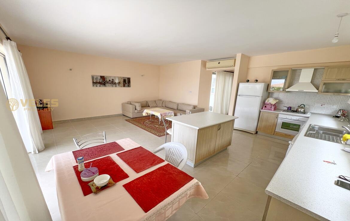 Эта квартира сочетает современный комфорт, стильную атмосферу и выгодное прибрежное расположение — идеальный вариант для жизни или отдыха на Северном Кипре. А самым привлекательным аспектом этой квартиры является просторный балкон, предоставляющий дополнительное место для отдыха на свежем воздухе.