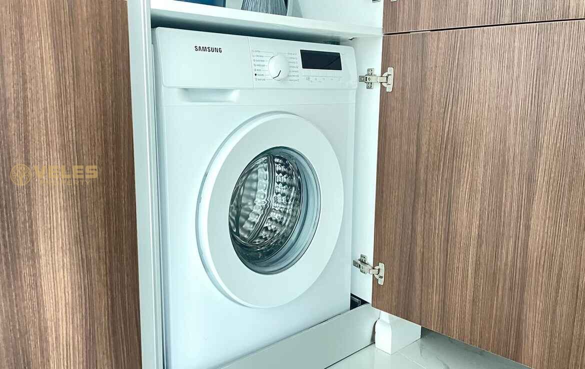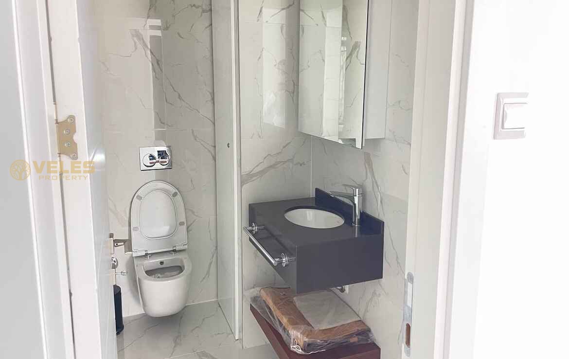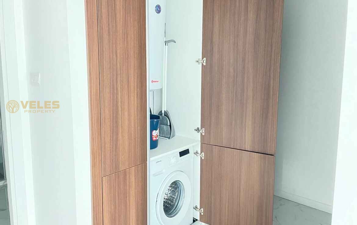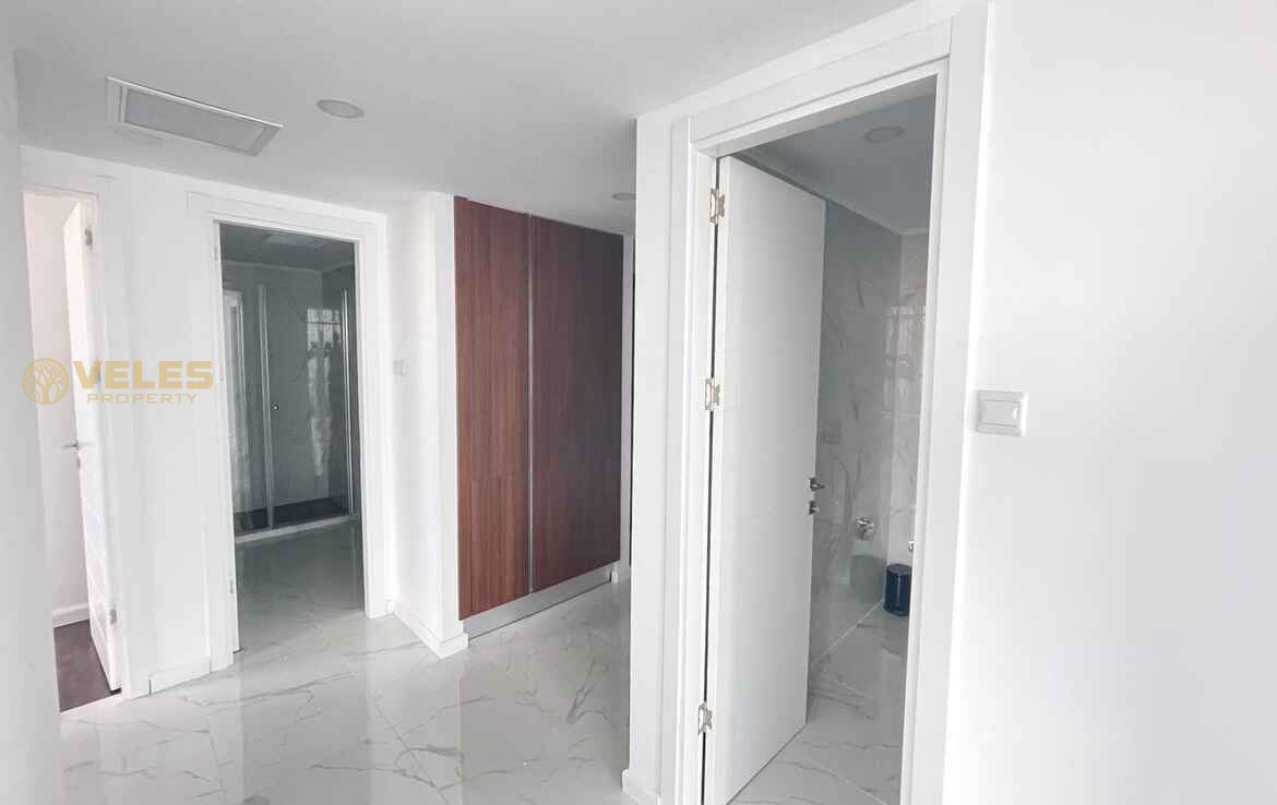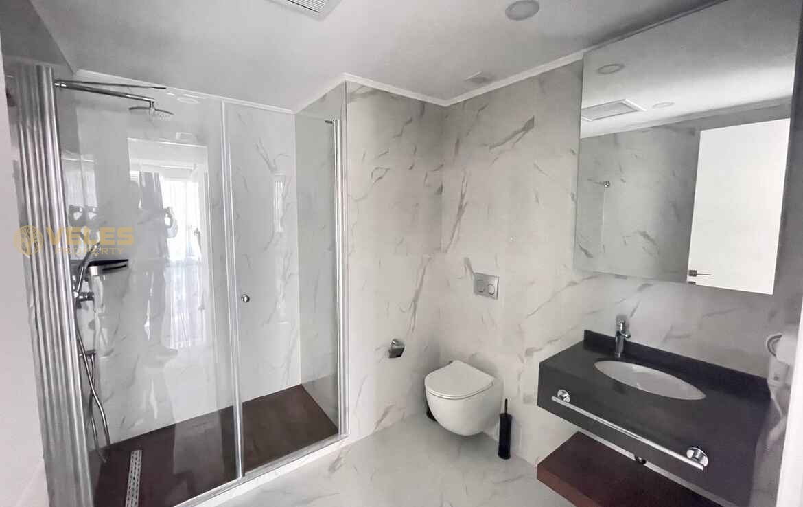 Просторная квартира 2+1 площадью 115 м² включает две современные ванные комнаты и полностью меблирована, что позволяет сразу заселиться или начать сдачу в аренду. Светлый интерьер, качественная отделка и большой балкон создают атмосферу комфортного отдыха и жизни у Средиземного моря.