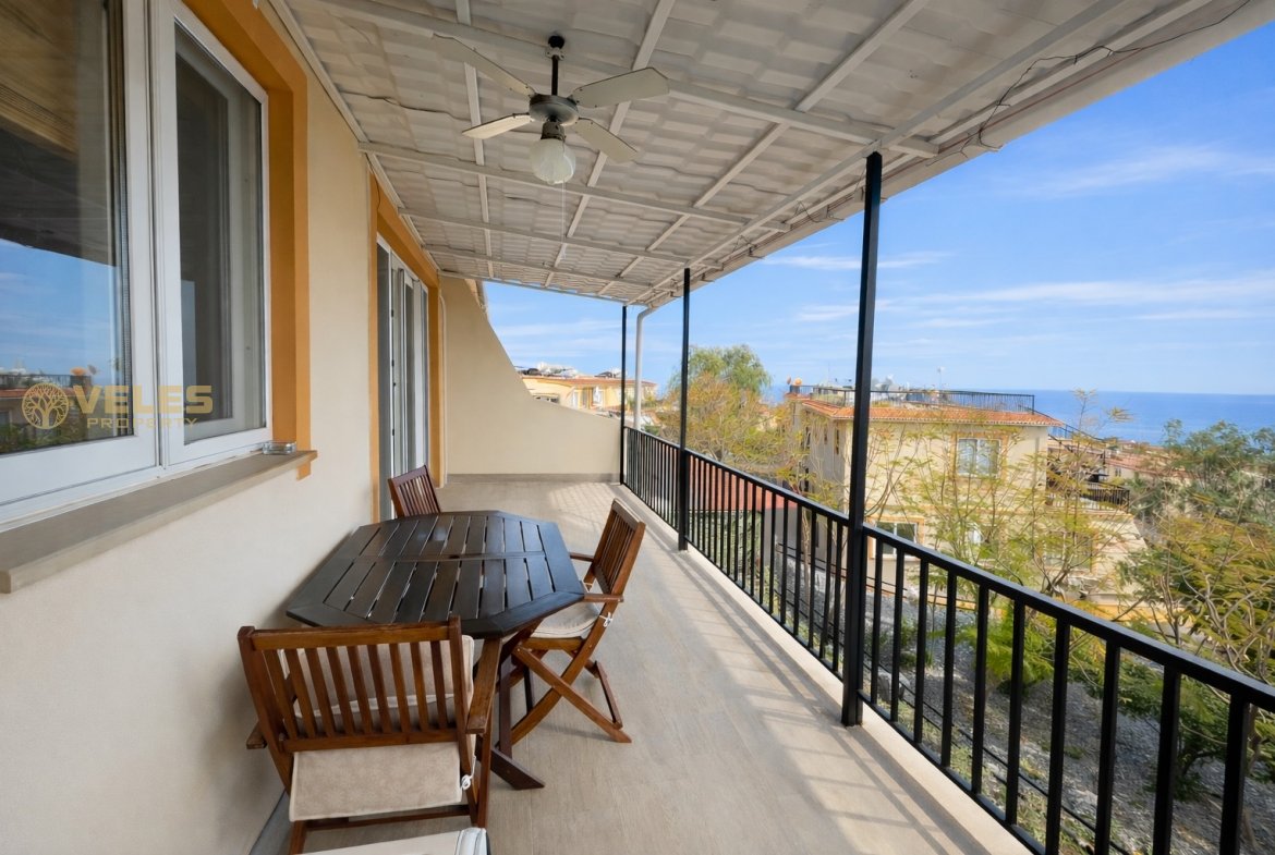 Уютная квартира с террасой на крыше расположена в закрытом жилом комплексе со шлагбаумом. Из окон и с террасы открывается живописный вид на Средиземное море и горы, создающий атмосферу уюта и спокойствия.